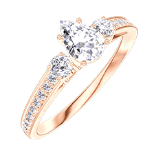Pierścionek Złoto różowe 375 - Diament Gruszka 0.3 karat - Kamienie boczne Diament - Oprawa Diament