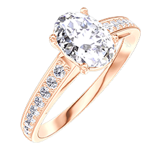 Pierścionek Złoto różowe 375 - Diament laboratoryjny Owal 0.7 karat - Oprawa Diament laboratoryjny