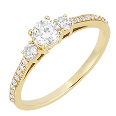 Poznaj elegancję pierścionka trilogy z kolekcji Pochodzenie od L'Atelier. Wykonany z żółtego złota 9 karat, łączy delikatność i blask dzięki 21 diamentom syntetycznym o łącznej masie 0,51 karata.