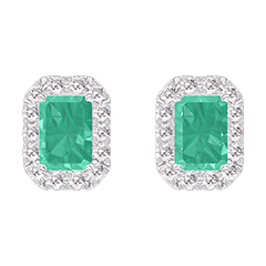Kolczyki Białe złoto 750 - Szmaragd Prostokąt 0.3 karat (2 X) - Korona z kamieni Diament