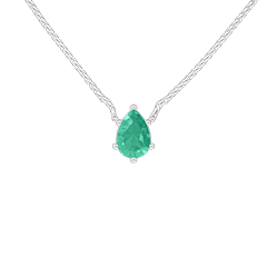 Ten elegancki naszyjnik wykonany jest z białego złota 9 karatów i ozdobiony szmaragdem o masie 0,3 ct w kształcie gruszki. Minimalistyczny design podkreśla naturalne piękno kamienia.