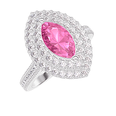 Pierścionek Białe złoto 750 - Różowy szafir Markiza 0.5 karat - Korona z kamieni Diament - Oprawa Diament