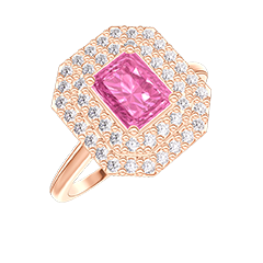 « L'ATELIER » NR 417022Pierścionek Złoto różowe 750 - Różowy szafir Prostokąt 0.5 karat - Korona z kamieni Diament