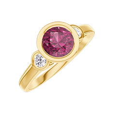Pierścionek Żółte złoto 750 - Rubin okrągły 0.5 karat - Kamienie boczne Diament