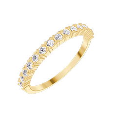 Poznaj tę damską obrączkę wykonaną z żółtego złota 18 karatów, osadzoną z półokręgiem 15 brylantów o łącznej masie 0,21 ct. Klasyczny design podkreśla czyste linie i naturalny blask kamieni.