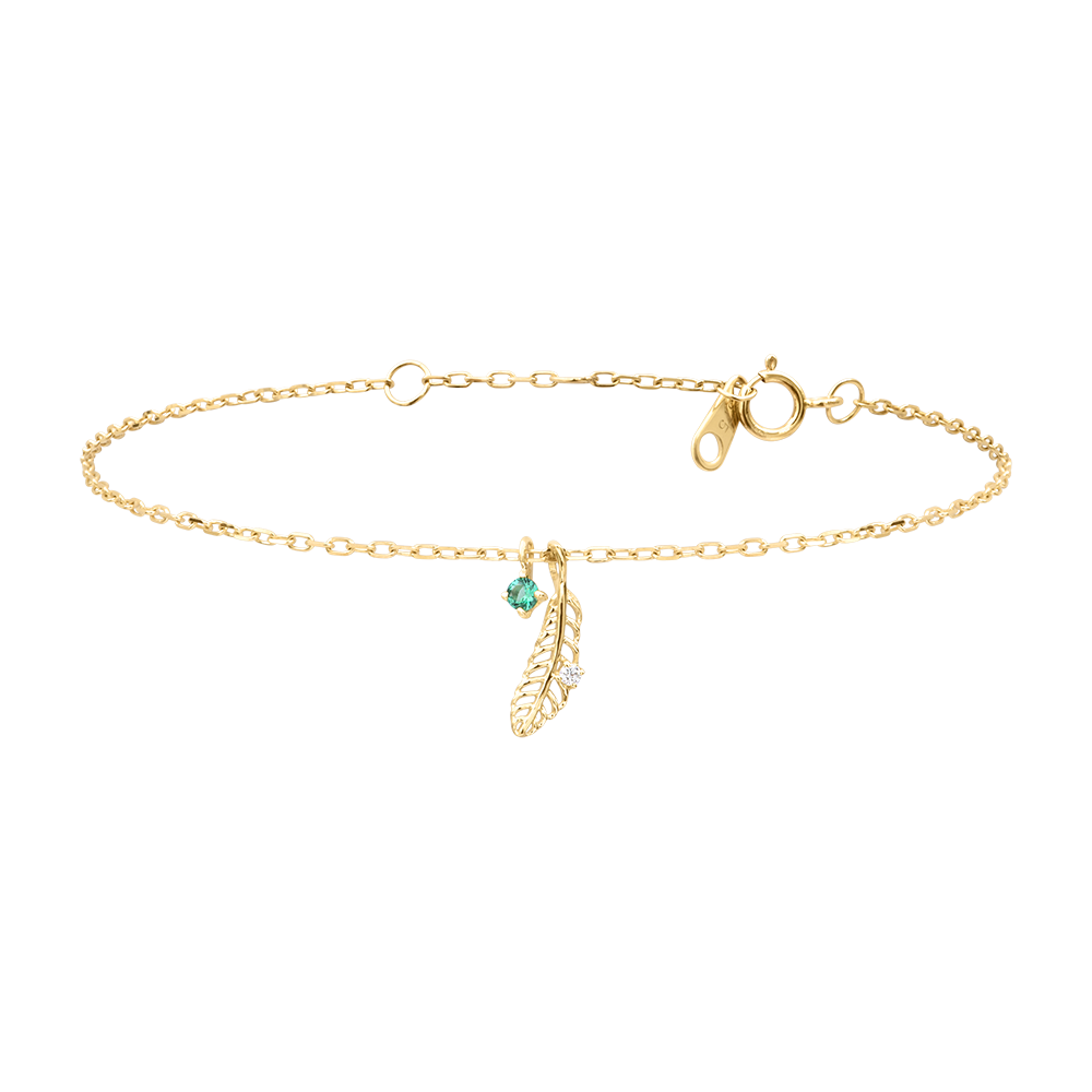 RAJSKI PTAK NR 4Bransoletka - Żółte złoto 375 - Syntetyczny szmaragd, Diament laboratoryjny ID : 3995