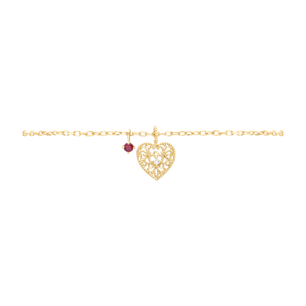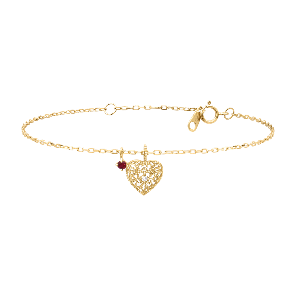 CENNY SEKRET NR 7Bransoletka Serce - Żółte złoto 375 - Diament laboratoryjny, Syntetyczny rubin ID : 3994