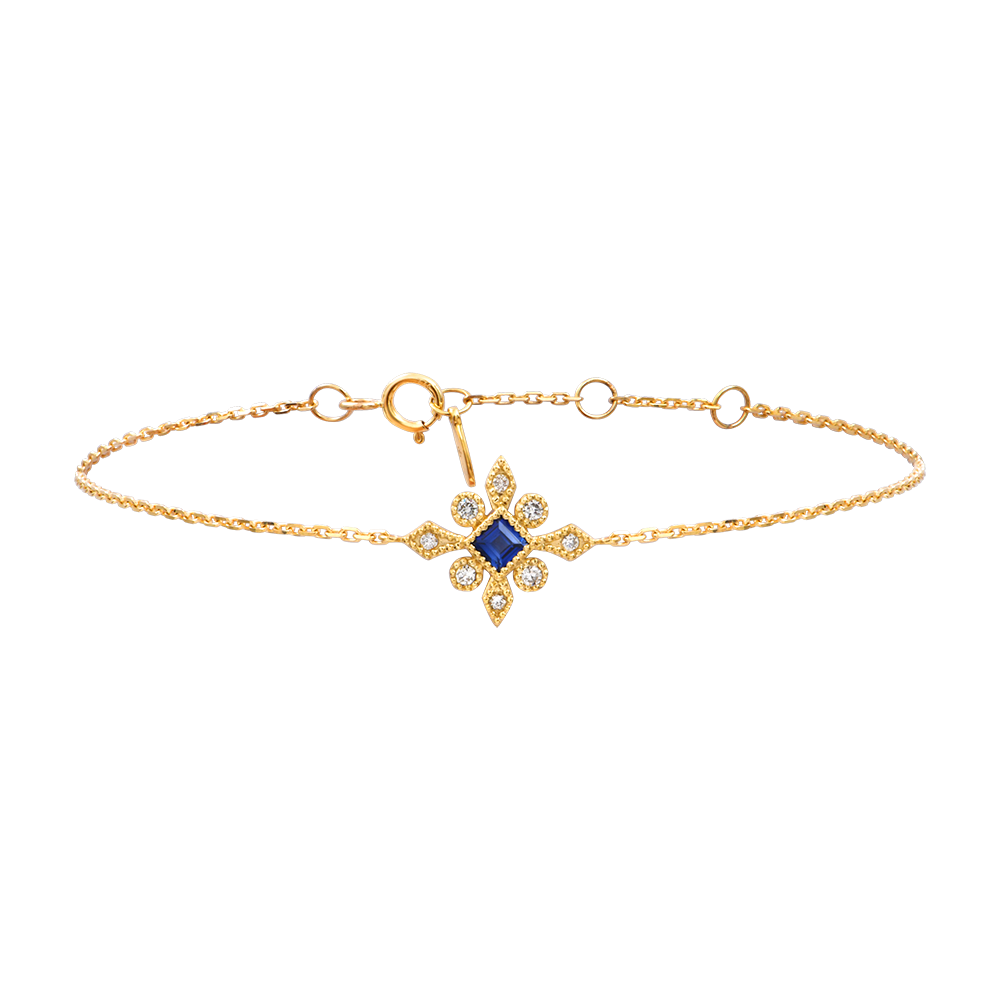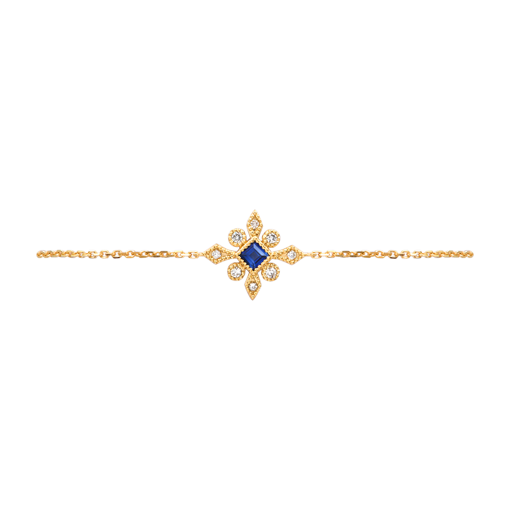 Bransoletka Fleur Astrale – Żółte złoto 9-karatowe z syntetycznym szafirem i diamentami