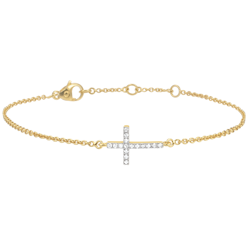 Bransoletka Krzyżyk z żółtego złota 9-karatowego z diamentami