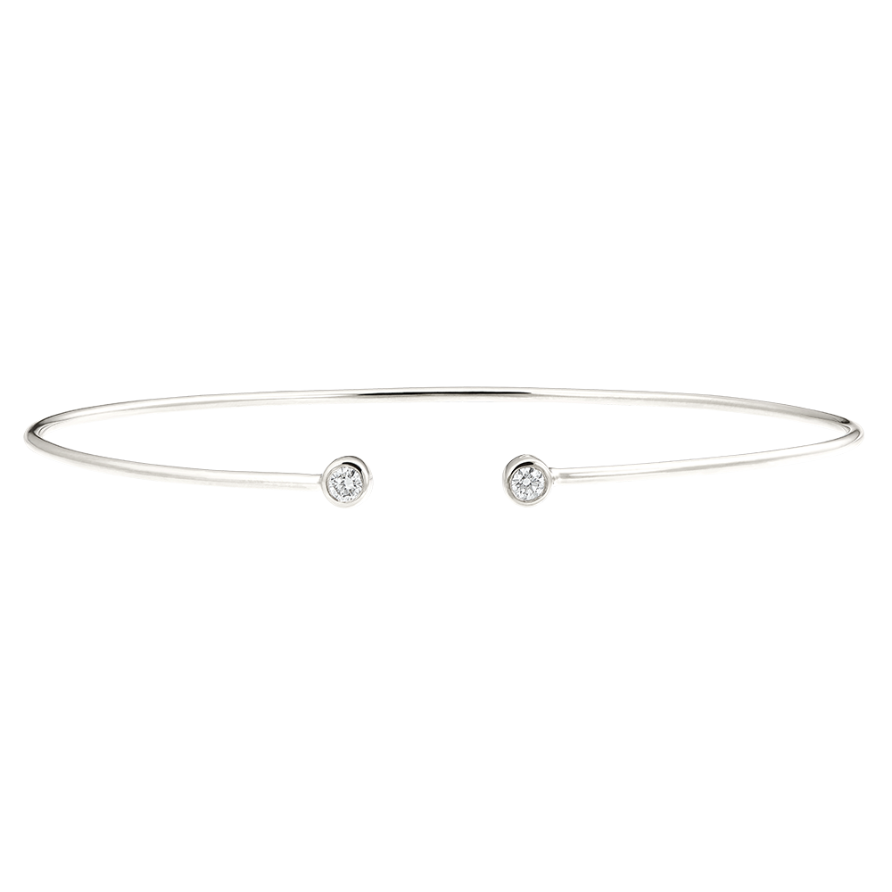 Delikatna i elegancka bransoletka w kształcie koła z dwoma drobnymi brylantami. Można ją nosić pojedynczo lub w połączeniu z modelem z żółtego i różowego złota.
