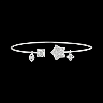 Bransoletka w kształcie koła otwarta Świeżość - Ty i ja Dobra gwiazda - 9 karatowe białe złoto i diamenty