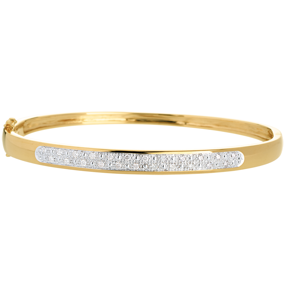 Opalizujący blask diamentów w starannej i wyrafinowanej oprawie w delikatnej bransoletce w kształcie koła.