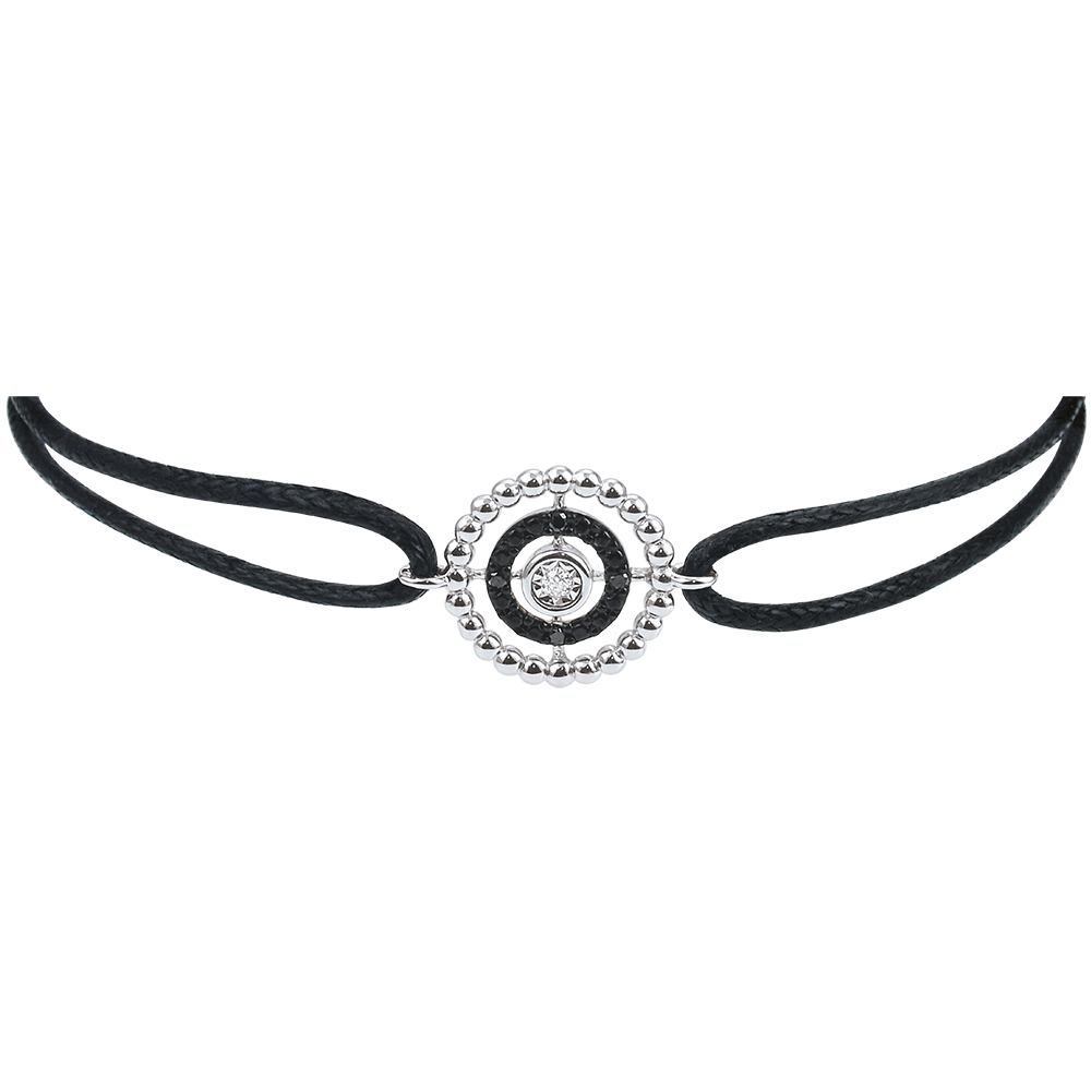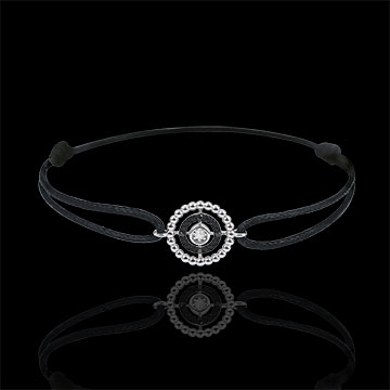 Koło ze złotych pereł otacza koło diamentów towarzyszących diamentowi środkowemu. Bransoletka o regulowanej długości: 18 cm, 17 cm, 16 cm. Wzór o długości 11mm i wysokości 11mm.