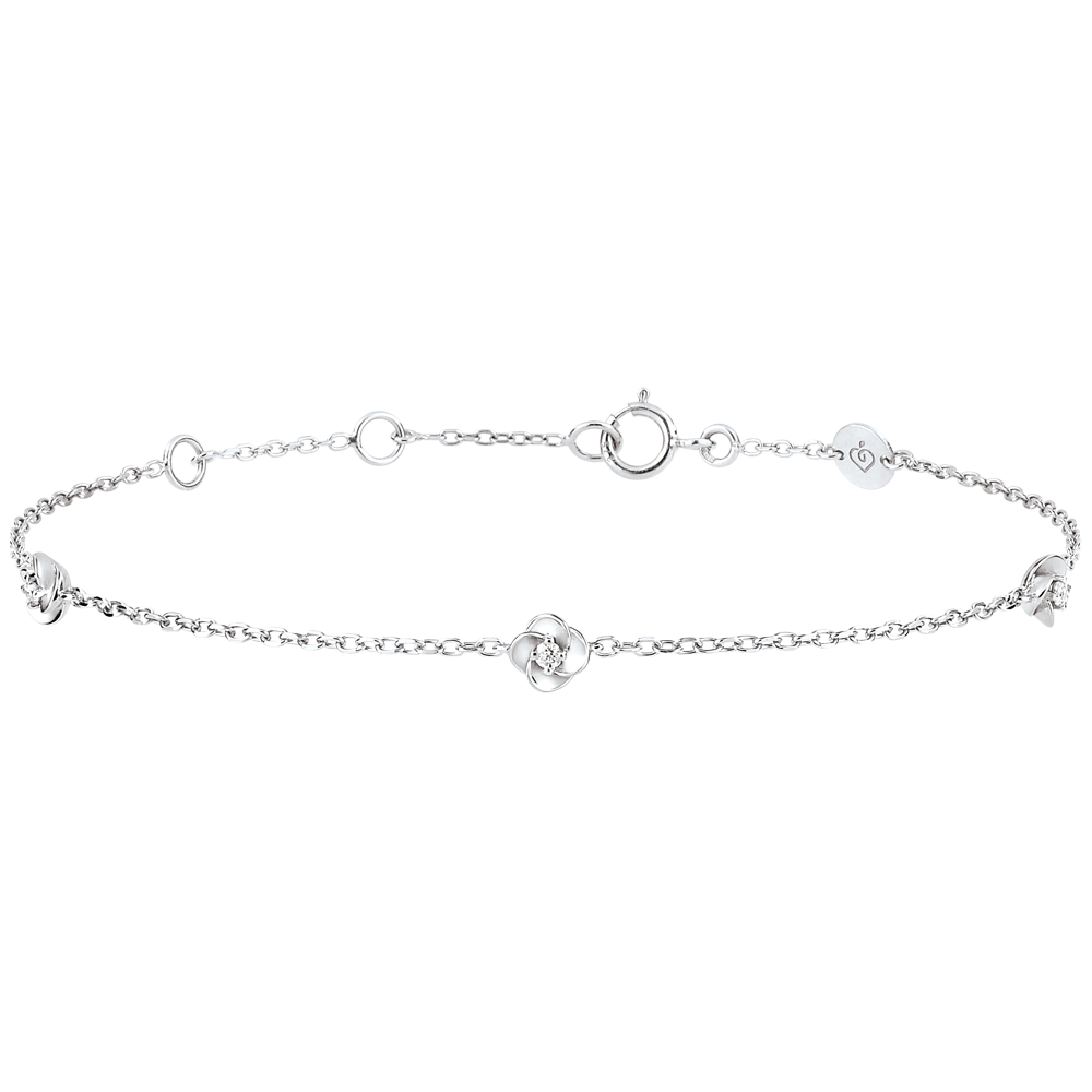 Bransoletka z migoczących kwiatów z rozwartymi płatkami odkrywającymi środek z wiecznego diamentu. Bransoletka z łańcuszka doskonale nadaje się do noszenia na co dzień lub na wielkie okazje.