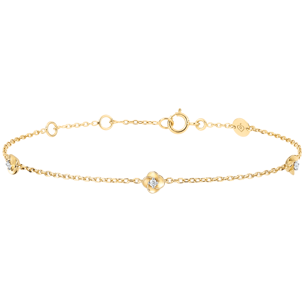 Bransoletka z migoczących kwiatów z rozwartymi płatkami odkrywającymi środek z wiecznego diamentu. Bransoletka z łańcuszka doskonale nadaje się do noszenia na co dzień lub na wielkie okazje.