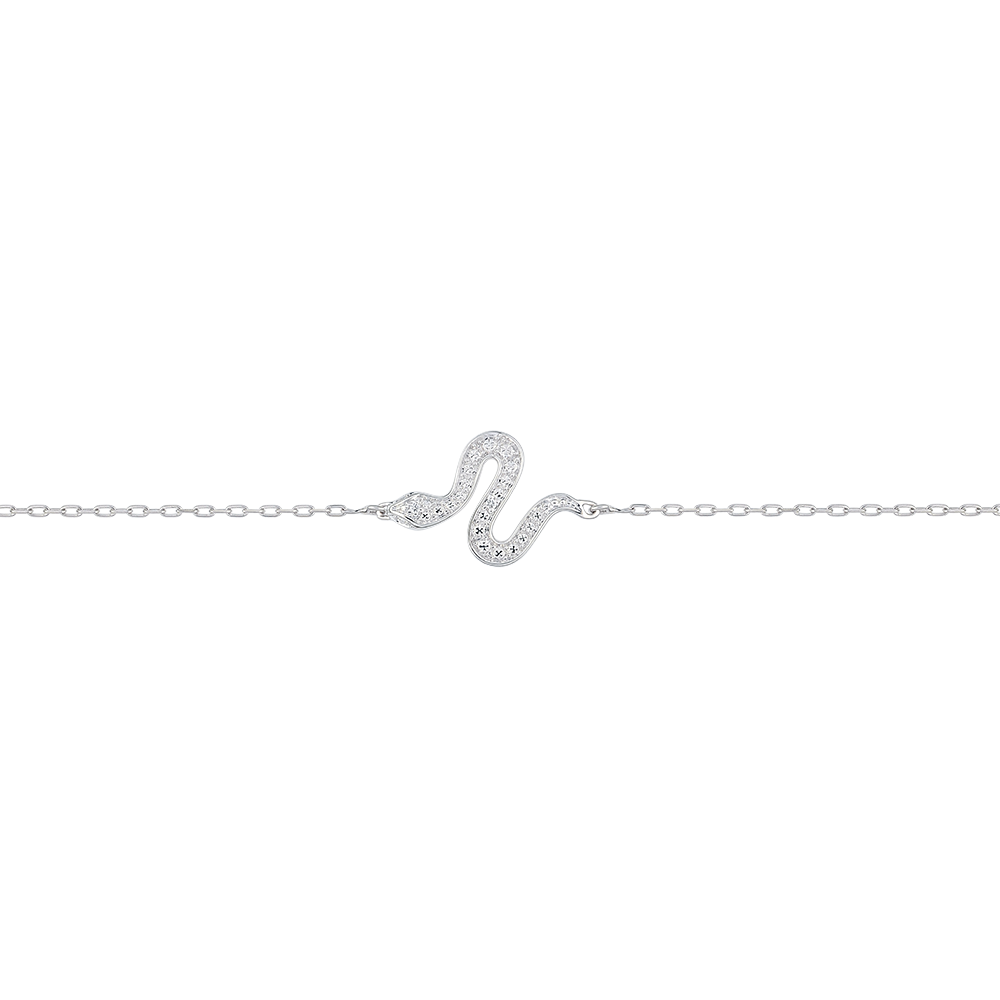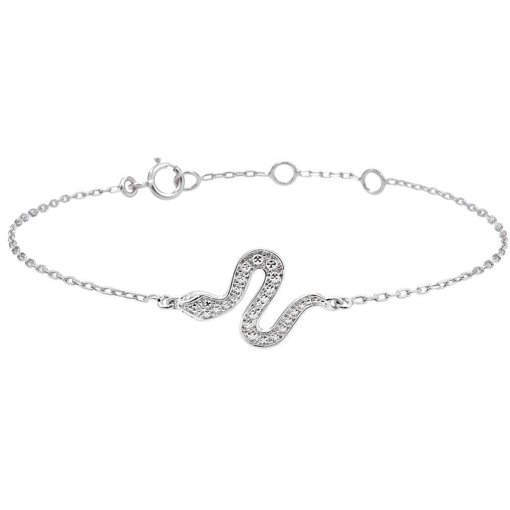 Bransoletka z wężem z białego złota o skręconym i olśniewającym kształcie, ozdobiona diamentami, w nowoczesnej i szykownej odsłonie.