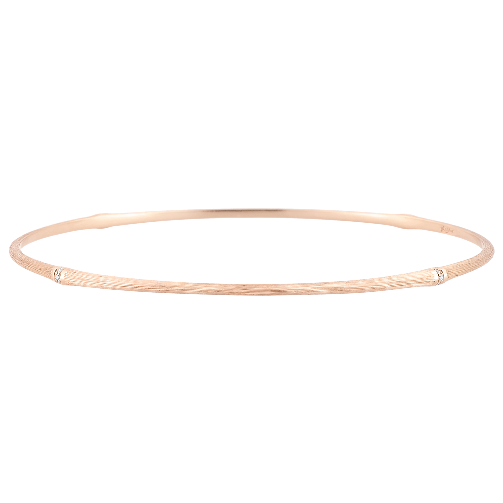 Elastyczna i trwała bambusowa tyczka przeobrażona w wieczną bransoletkę z szczotkowanego różowego złota wysadzaną diamentami. Wykonane ręcznie wykończenie matowe nadaje obrączce ujmujący naturalny i realistyczny wygląd.