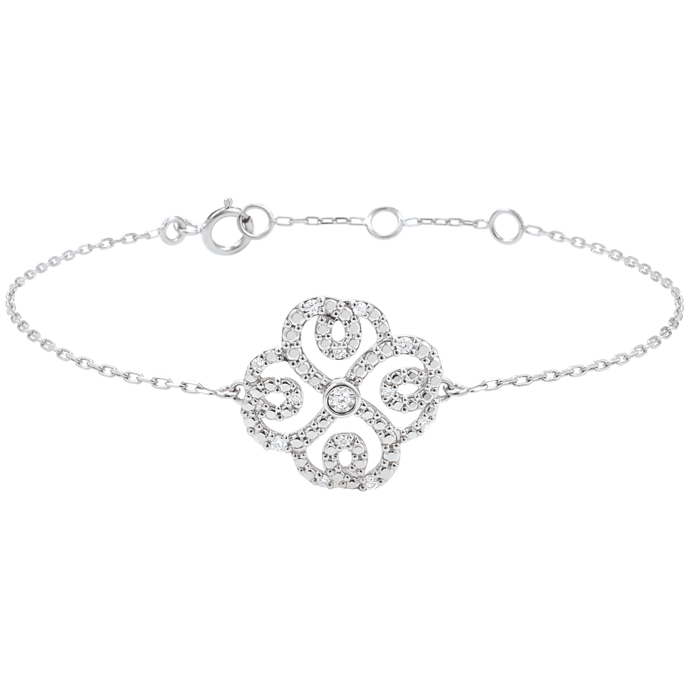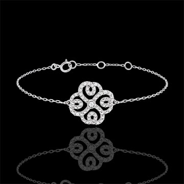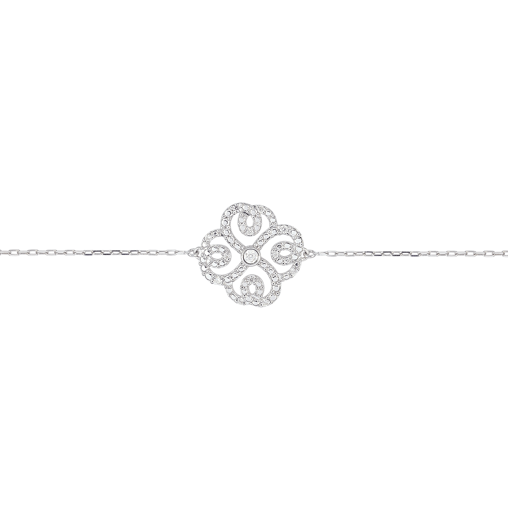 Bransoletka Przeznaczenie z jednym diamentem - Koniczyna w Arabeski - złoto białe 9-karatowe i diamenty