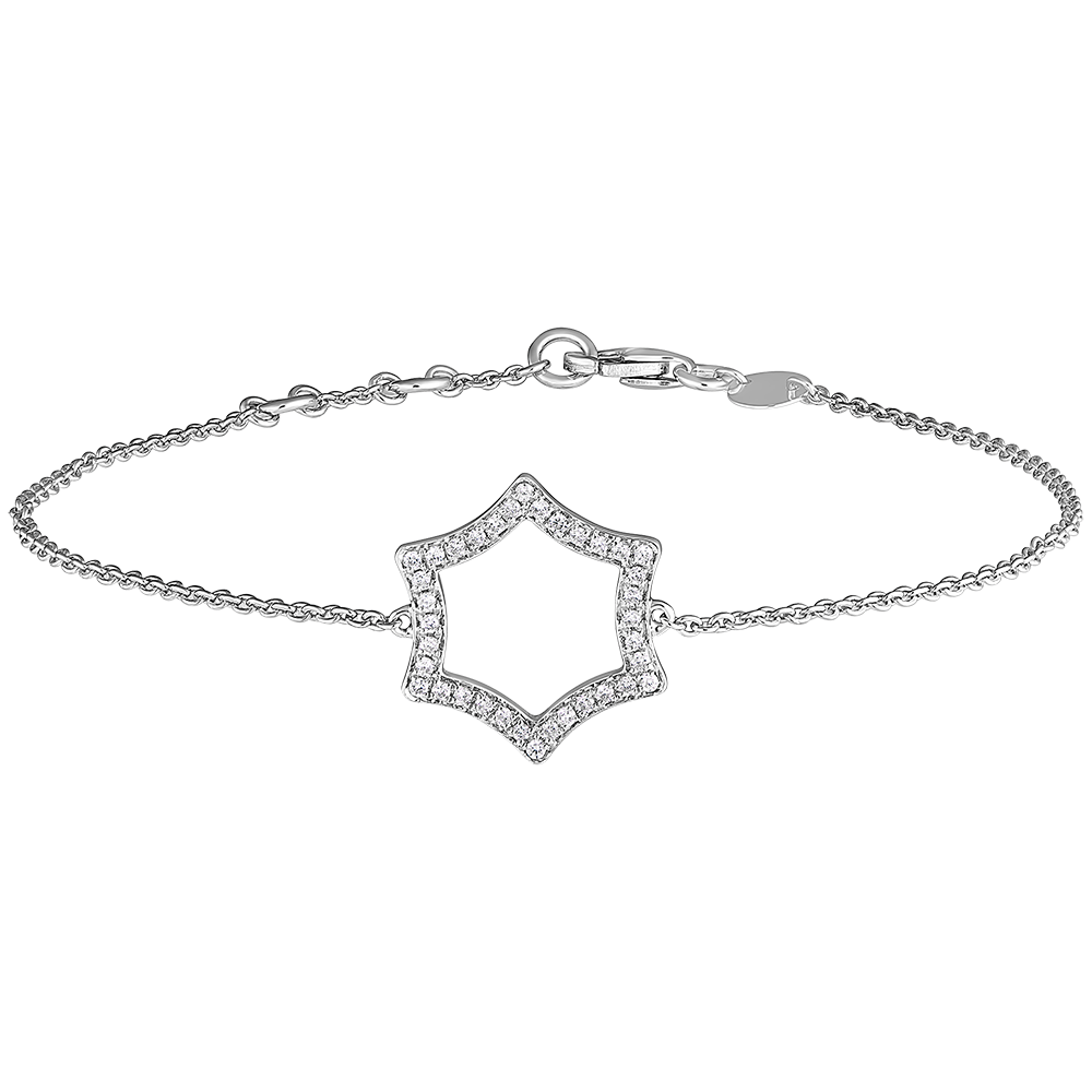 Delikatna i kobieca bransoletka z łańcuszka ozdobiona motywem gwiazdy subtelnie wysadzanej diamentami. Bransoletka z możliwością regulacji długości: 18cm, 17cm, 16cm.