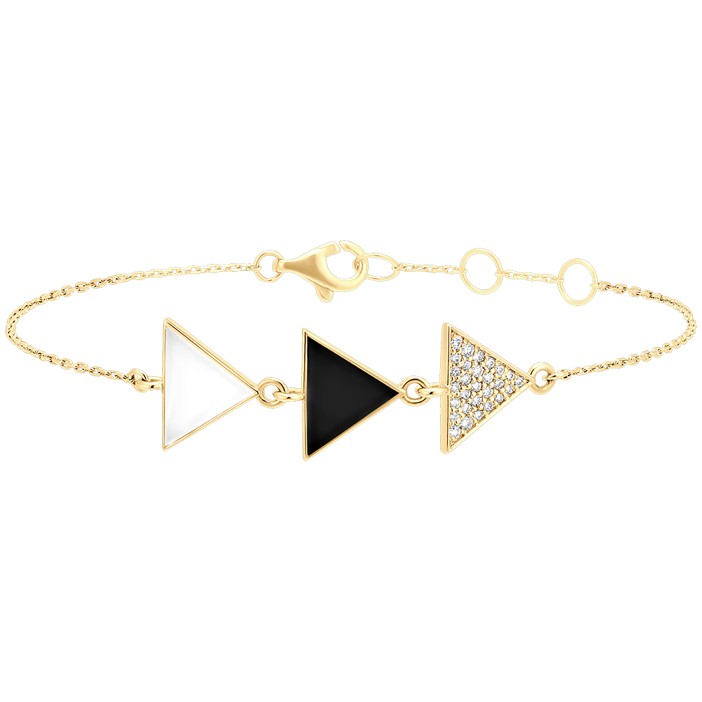 - Wzór Trio z trzema splecionymi trójkątami z diamentami i emalią