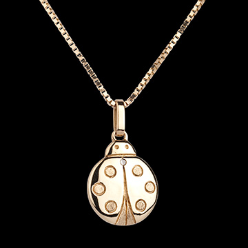 Słodka i okrągła biedronka z żółtego złota przynosi szczęście. Siódma kropka to diament. Duży model.