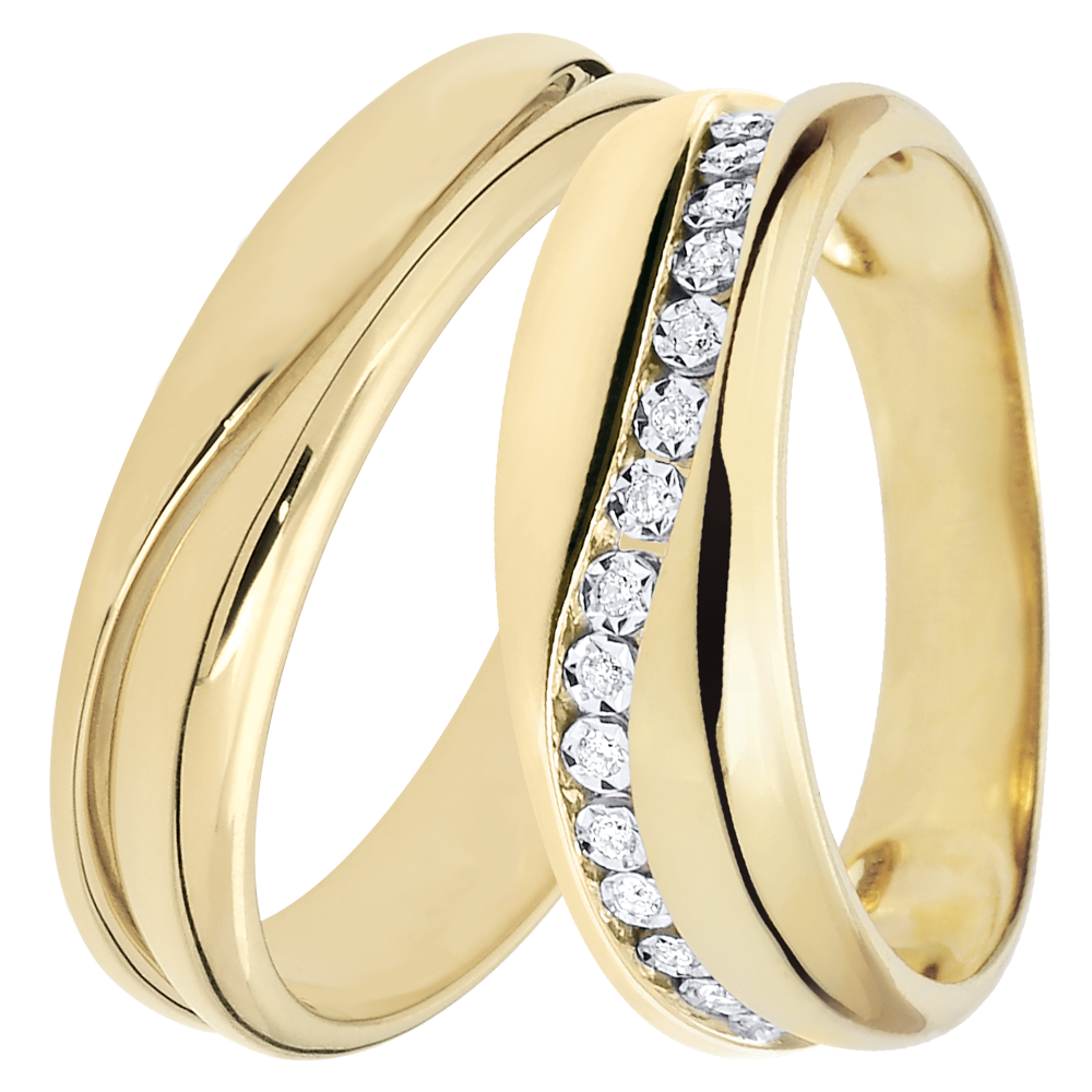 Duet obrączek Amour – złoto żółte i diamenty – 18-karatowe