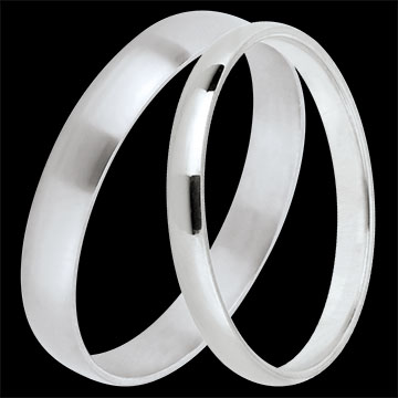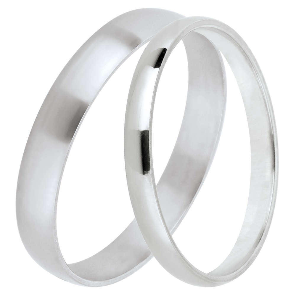 Elegancka para klasycznych obrączek ślubnych z białego złota: 2 mm dla niej, 3 mm dla niego. Ponadczasowa harmonia i wyrafinowanie na wspólną drogę życia.…