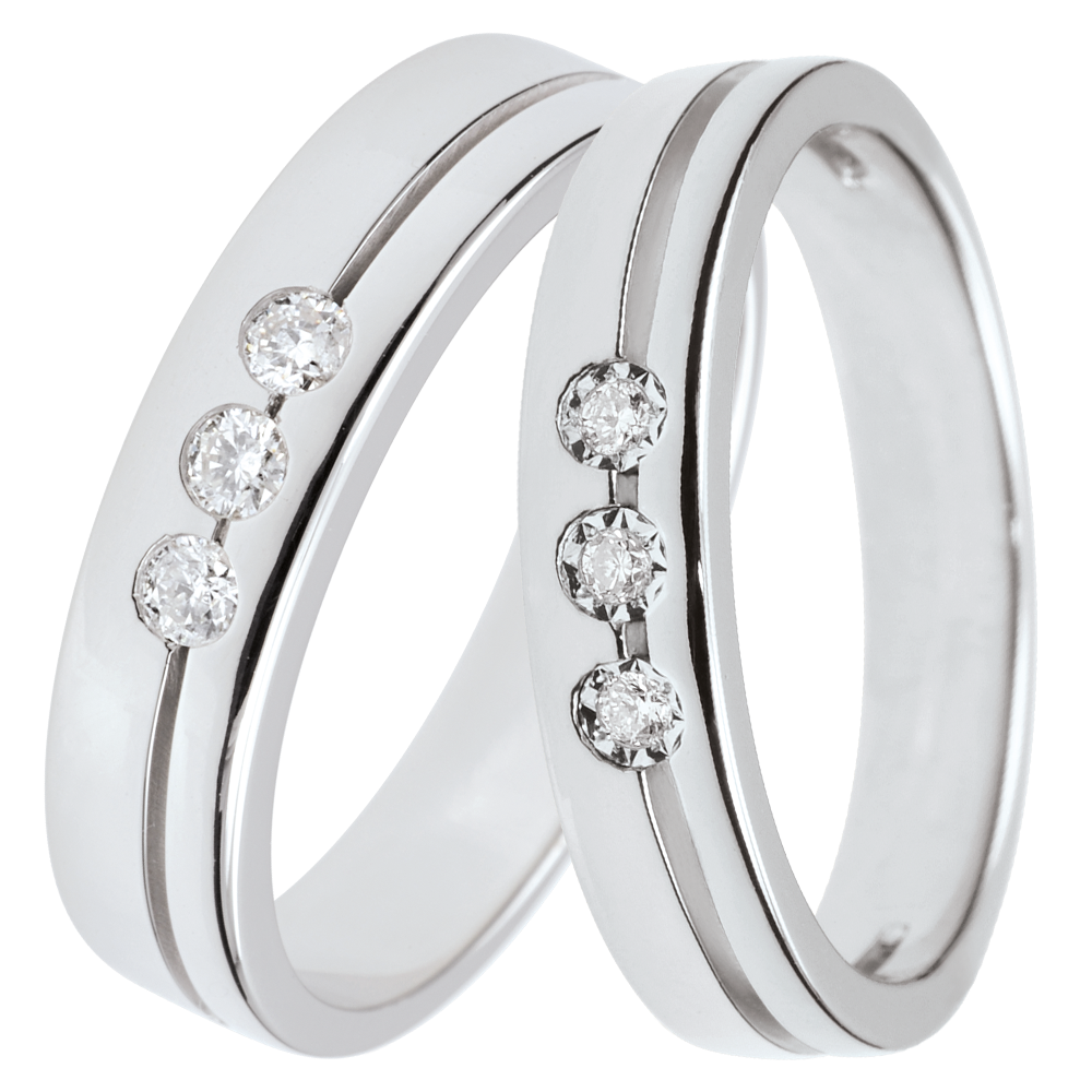 Duo obrączek Olympia – białe złoto i diamenty – 9 karatów