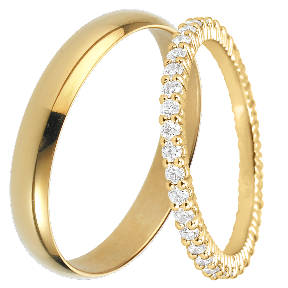 Elegancka obrączka z żółtego złota wysadzana 38 wyjątkowymi diamentami na całym obwodzie. Ponadczasowa obrączka ślubna stanowiąca idealny komplet z każdym pierścionkiem zaręczynowym lub do noszenia oddzielnie.