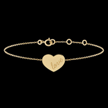 Ta bransoletka wykonana jest z żółtego złota 9 karatów i ozdobiona starannie grawerowanym medalikiem w kształcie serca.