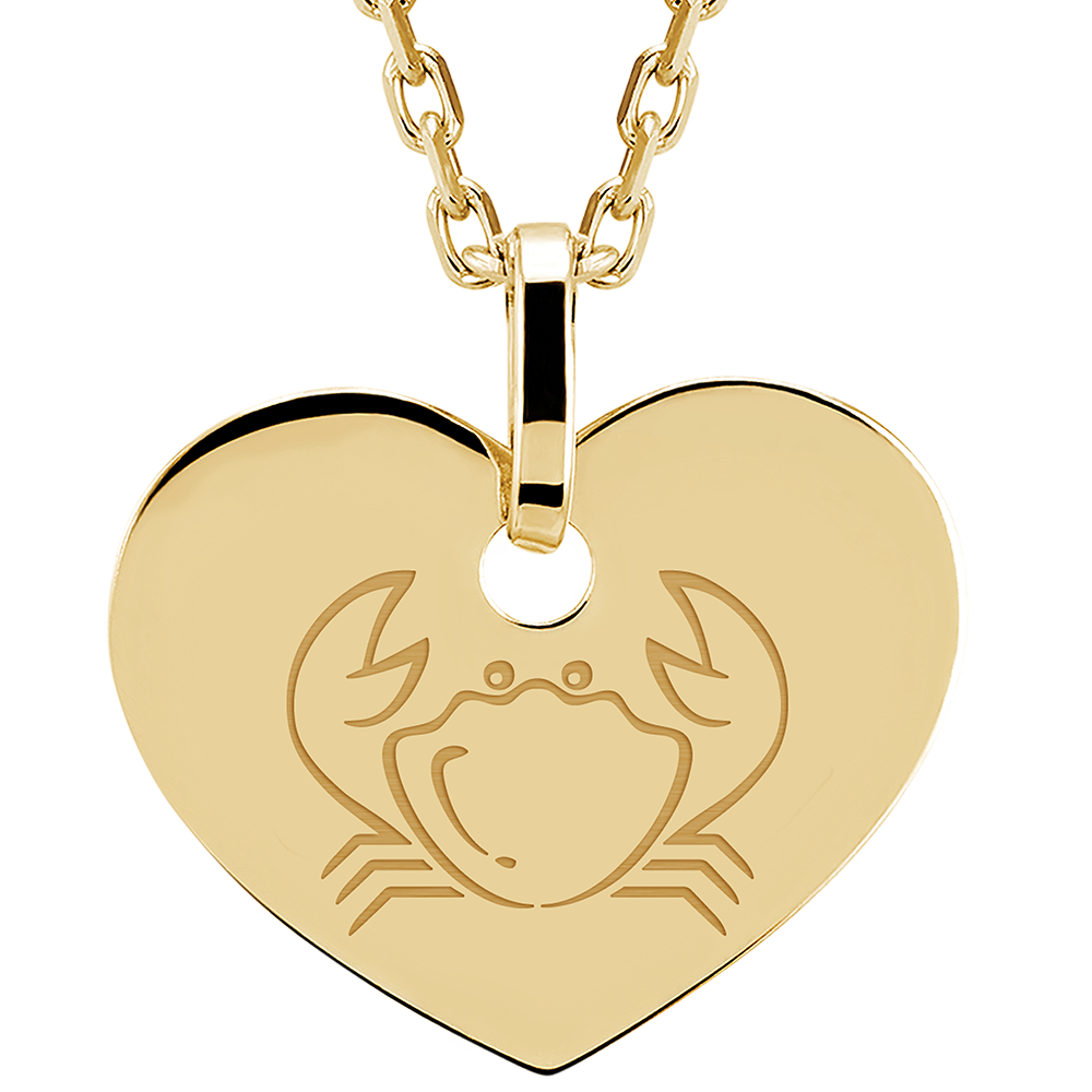 Grawerowany medalik serduszko - Cancer - 9 karatowe żółte złoto - Kolekcja Zodiac Yours - Edenly Yours