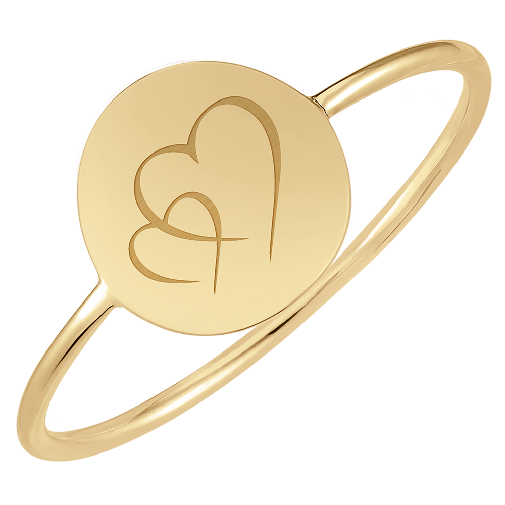 Pierścionek z okrągłym medalionem z grawerem - 9 karatowe żółte złoto - Kolekcja Lovely Yours - Edenly Yours