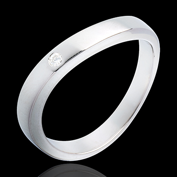 Eliptyczna obrączka z białego złota 18-karatowego z 1 diamentem