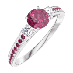 « L'ATELIER » NR 160631Pierścionek Białe złoto 750 - Rubin okrągły 0.3 karat - Kamienie boczne Diament - Oprawa Rubin 4.5 (42)