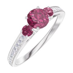 « L'ATELIER » NR 160648Pierścionek Białe złoto 375 - Rubin okrągły 0.3 karat - Kamienie boczne Rubin - Oprawa Diament 4.5 (42)