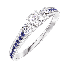 « L'ATELIER » NR 209036Pierścionek Białe złoto 375 - Klaster naturalnych diamentów okrągły odpowiednik 0.3 - Kamienie boczne Diament - Oprawa Niebieski szafir 4.5 (36)