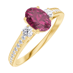 « L'ATELIER » NR 163325Pierścionek Żółte złoto 750 - Rubin Owal 0.5 karat - Kamienie boczne Diament - Oprawa Diament 5 (4)