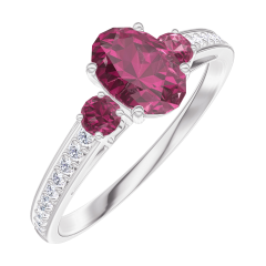 « L'ATELIER » NR 163347Pierścionek Białe złoto 750 - Rubin Owal 0.5 karat - Kamienie boczne Rubin - Oprawa Diament 5 (4)