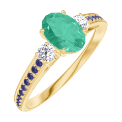 « L'ATELIER » NR 164533Pierścionek Żółte złoto 750 - Szmaragd Owal 0.5 karat - Kamienie boczne Diament - Oprawa Niebieski szafir 5 (4)