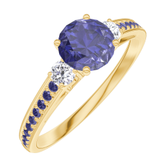 « L'ATELIER » NR 163633Pierścionek Żółte złoto 750 - Niebieski szafir Okrągły 0.5 karat - Kamienie boczne Diament - Oprawa Niebieski szafir 4.8 (21)