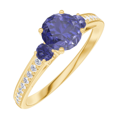 « L'ATELIER » NR 163666Pierścionek Żółte złoto 375 - Niebieski szafir okrągły 0.5 karat - Kamienie boczne Niebieski szafir - Oprawa Diament 4.5 (16)