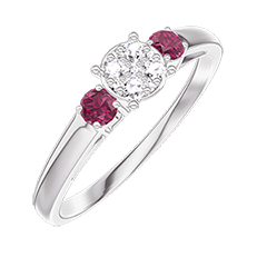 « L'ATELIER » Nº209643Pierścionek Białe złoto 750 - Klaster naturalnych diamentów okrągły odpowiednik 0.5 - Kamienie boczne Rubin 4.5 (16)