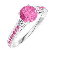 « L'ATELIER » NR 312297Pierścionek Białe złoto 750 - Różowy szafir okrągły 0.5 karat - Kamienie boczne Diament - Oprawa Różowy szafir 4.5 (16)
