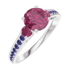 « L'ATELIER » NR 165455Pierścionek Białe złoto 750 - Rubin okrągły 0.7 karat - Kamienie boczne Rubin - Oprawa Niebieski szafir 5 (7)