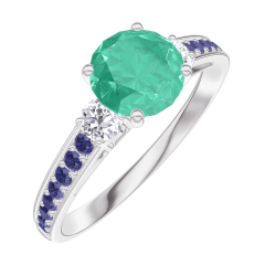 « L'ATELIER » NR 166635Pierścionek Białe złoto 750 - Szmaragd okrągły 0.7 karat - Kamienie boczne Diament - Oprawa Niebieski szafir 4.9 (7)