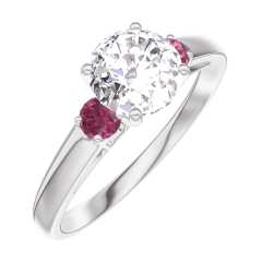 « L'ATELIER » Nº184844Pierścionek Białe złoto 375 - Diament laboratoryjny okrągły 0.7 karat - Kamienie boczne Rubin 4.9 (7)