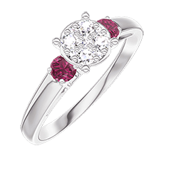 « L'ATELIER » Nº210243Pierścionek Białe złoto 750 - Klaster naturalnych diamentów okrągły odpowiednik 0.7 - Kamienie boczne Rubin 4.9 (7)