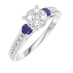 « L'ATELIER » NR 210267Pierścionek Białe złoto 750 - Klaster naturalnych diamentów okrągły odpowiednik 0.7 - Kamienie boczne Niebieski szafir - Oprawa Diament 4.9 (7)