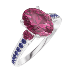 « L'ATELIER » NR 168156Pierścionek Białe złoto 375 - Rubin Owal 1 karat - Kamienie boczne Rubin - Oprawa Niebieski szafir 4.7 (9)