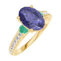« L'ATELIER » NR 168786Pierścionek Żółte złoto 375 - Niebieski szafir Owal 1 karat - Kamienie boczne Szmaragd - Oprawa Diament 4.7 (10)
